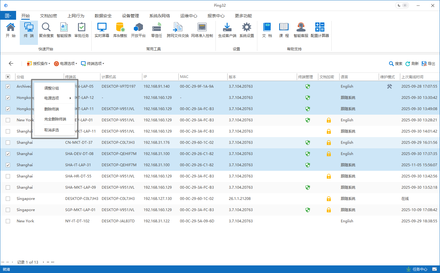 终端首次安装上线后,管理员通常需要将其移动到对应的组织/部门分组,以便统一下发策略并进行权限管理。Ping32 支持手动调整与按规则自动分组两类方式,满足单台操作、批量处理及长期自动化归类等场景。