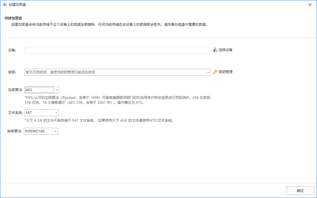 注意:加密盘如被格式化,需要重新创建加密盘。
