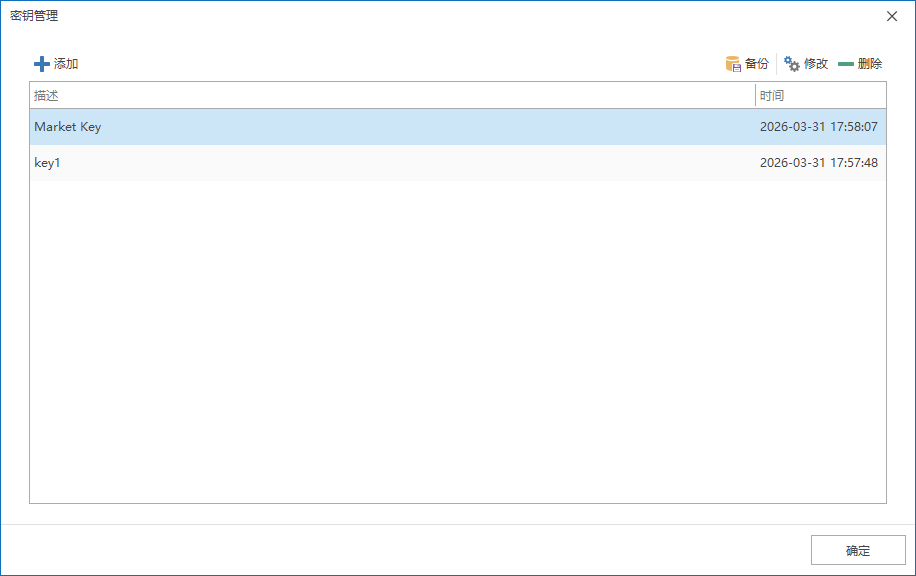 - 密钥:如无可用密钥,可点击 密钥管理 创建一个