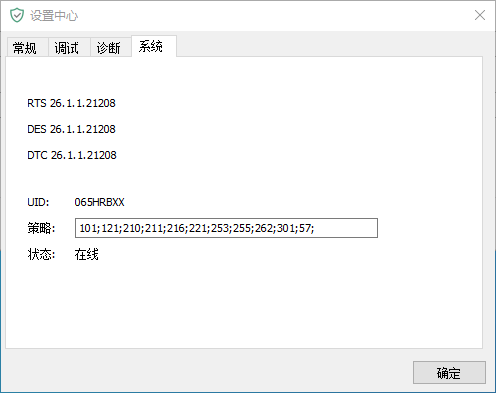 4. 点击 系统(System) 选项卡,查看 RTS 对应的版本号,该版本号即为客户端版本(如下图)