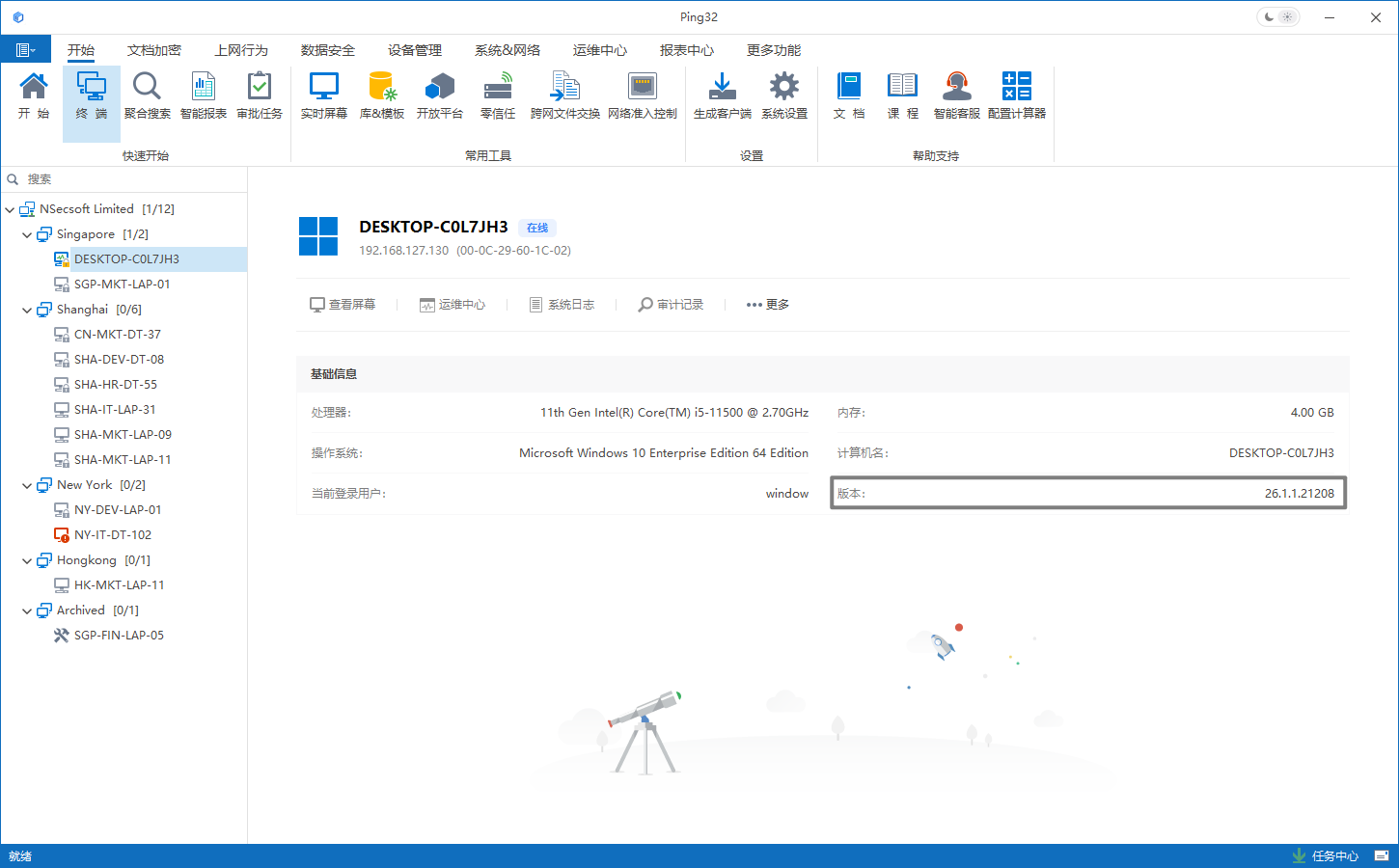 在版本升级、兼容性确认或问题定位过程中,通常需要准确获取客户端版本号。Ping32 支持通过控制台与客户端本地两种途径查看,覆盖单台核查与批量统计等场景。