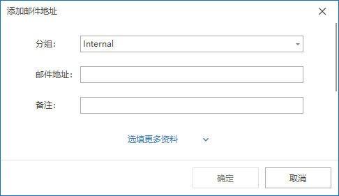 2. 点击 添加,添加邮件地址,并设置分组及备注。