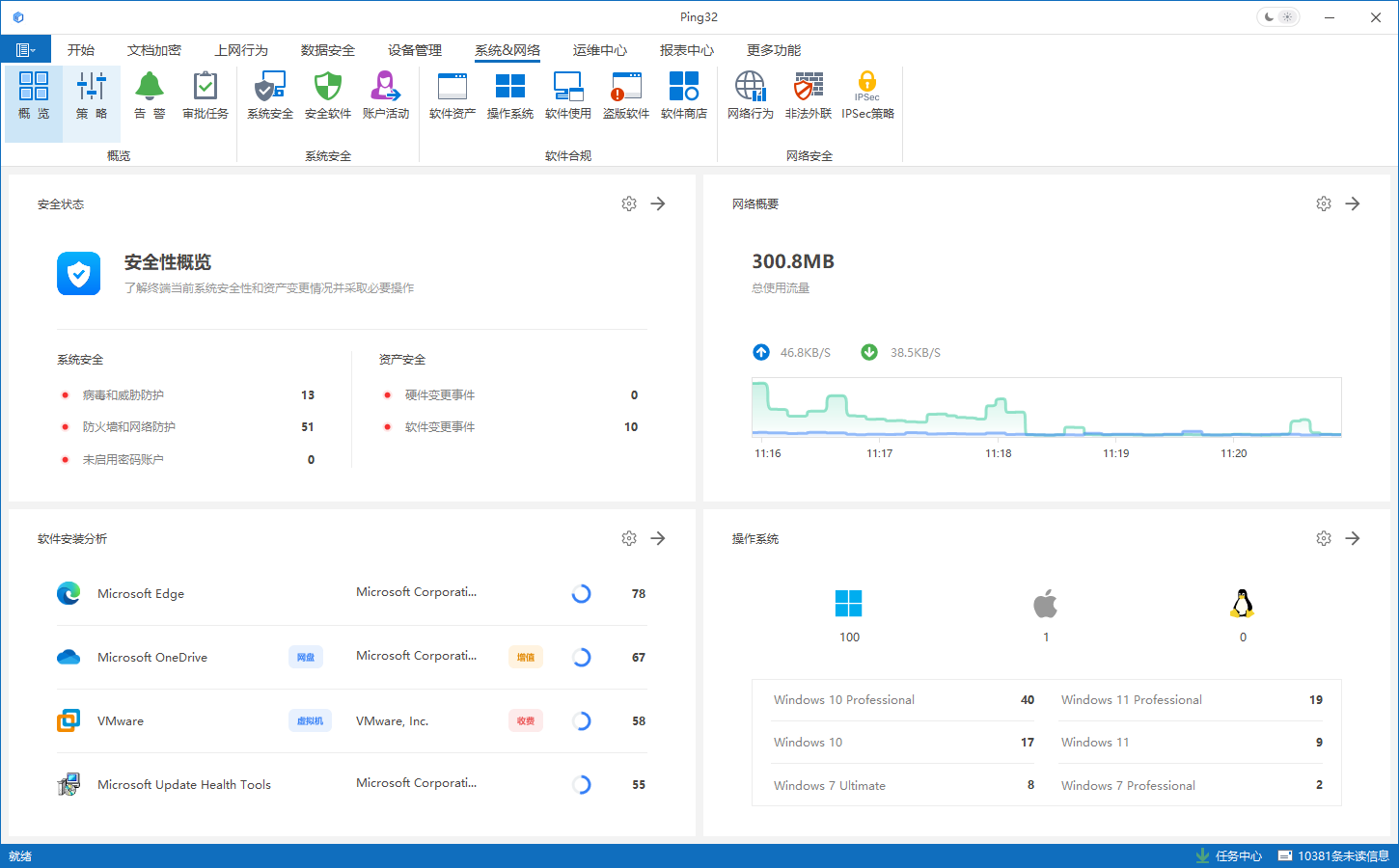 在实际使用中,Ping32 强调“开箱即用”和“管理无感知”。系统部署方式灵活,不依赖复杂的网络改造或额外硬件投入,企业可以通过线上方式完成部署并快速上线。在日常使用过程中,系统尽量减少对员工操作习惯的干扰,避免因频繁弹窗或复杂流程影响业务效率,让安全能力自然融入日常工作。