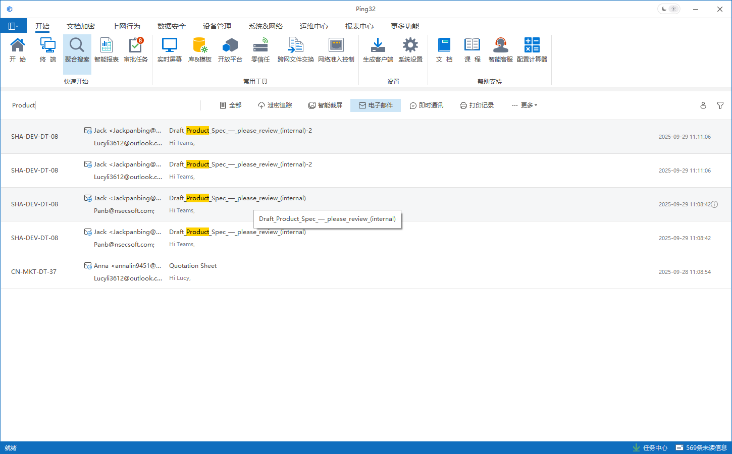 Ping32 提出的聚合搜索(Aggregated Search),是一套面向安全事件响应阶段(Incident Response)的创新能力体系:它不只是“更快的日志检索”,而是通过重构审计逻辑,将分散、异构的审计数据转化为可验证、可复盘的事件叙事,帮助企业从线索出发快速还原泄密全貌,形成完整证据链。
