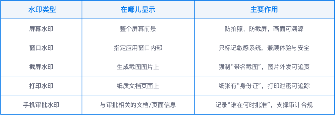 对很多还没有大规模部署 DLP、文档加密的企业来说,水印其实是一个非常适合作为起点的能力: