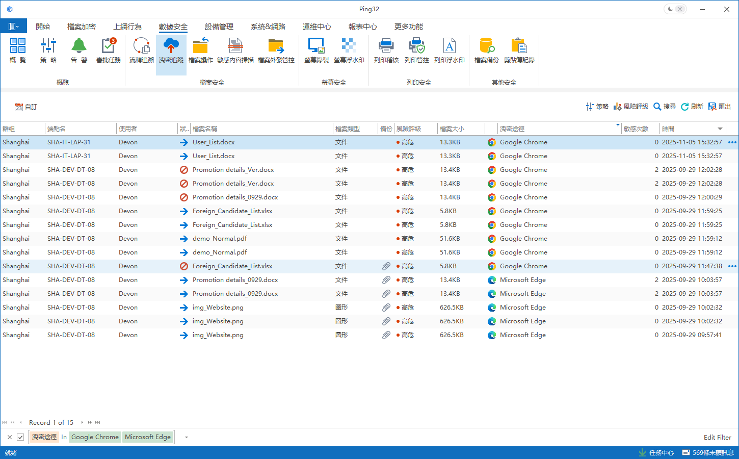在瀏覽器成為資料外發重要通道的今天,唯有真正看清檔案去向,企業才能對洩密風險作出準確判斷。Ping32 洩密追蹤新增的智能分析洩密應用,透過對瀏覽器上載檔案的深度分析與網域精準定位,為企業補齊洩密治理中的關鍵一環,令事件調查更清晰、風險評估更可靠、處置決策更有依據。